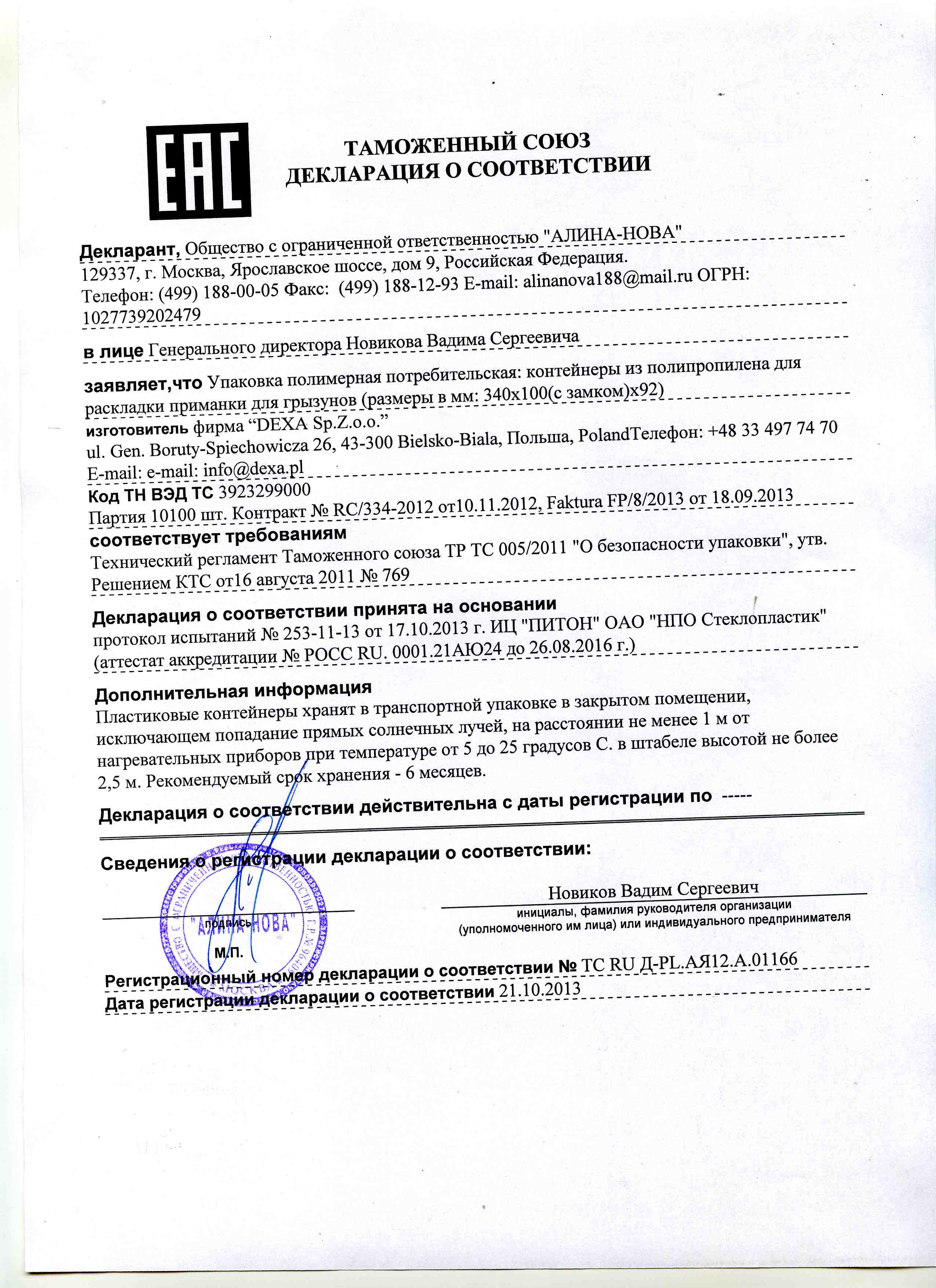 Эксклюзивный дистрибьютор в РФ – ООО «Алина-Нова», ОГРН 1027739202479